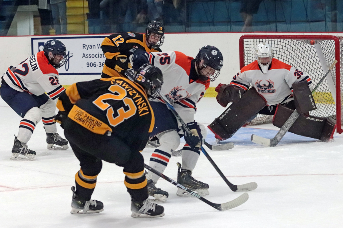 Photos: Justin Cairns SAULT STE. MARIE, Mich. – A workmanlike road effort that featured a well-balanced offensive attack and the shutout goaltending of Ryan Hicks powered the Soo Thunderbirds to a 5-0 triumph over the rival Soo Eagles Friday evening in Northern Ontario Junior Hockey League action at Pullar Stadium. Some solid cycle work from the […]