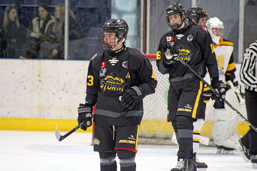 IROQUOIS FALLS, Ont. – Coming back from an early three-goal deficit, the Soo Eagles responded to earn a 3-3 overtime tie with the Iroquois Falls Storm in a Northern Ontario Junior Hockey League get together Saturday at Jus Jordan Arena.