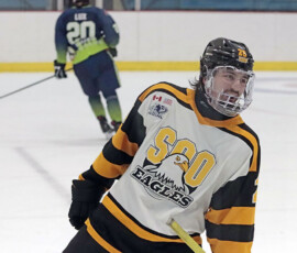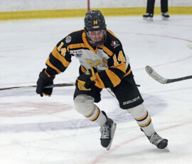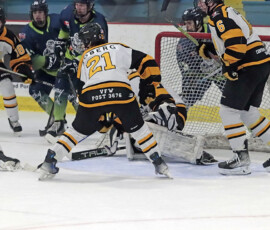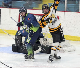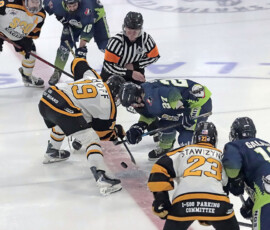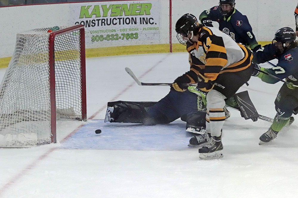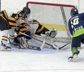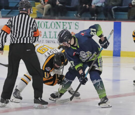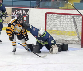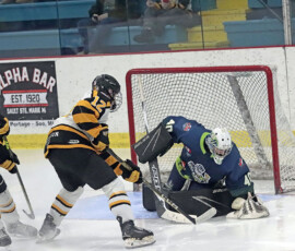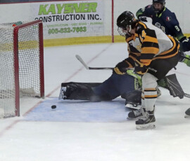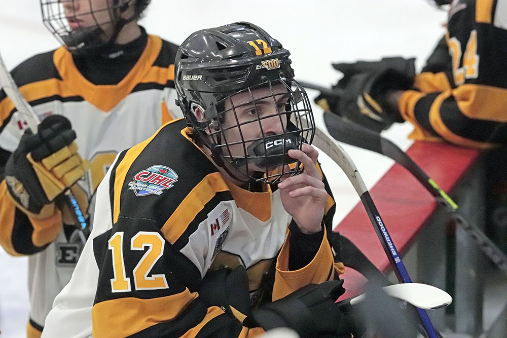 It was the Eagles who picked up the lone goal of the first period, which came late, as they broke out of their own zone with speed that led to a two-on-one where Anden Marceau sent in Gold who went in on Paper Kings’ netminder Logan Vale and made a nice deke to his left before tucking in his ninth of the season at 19:43.