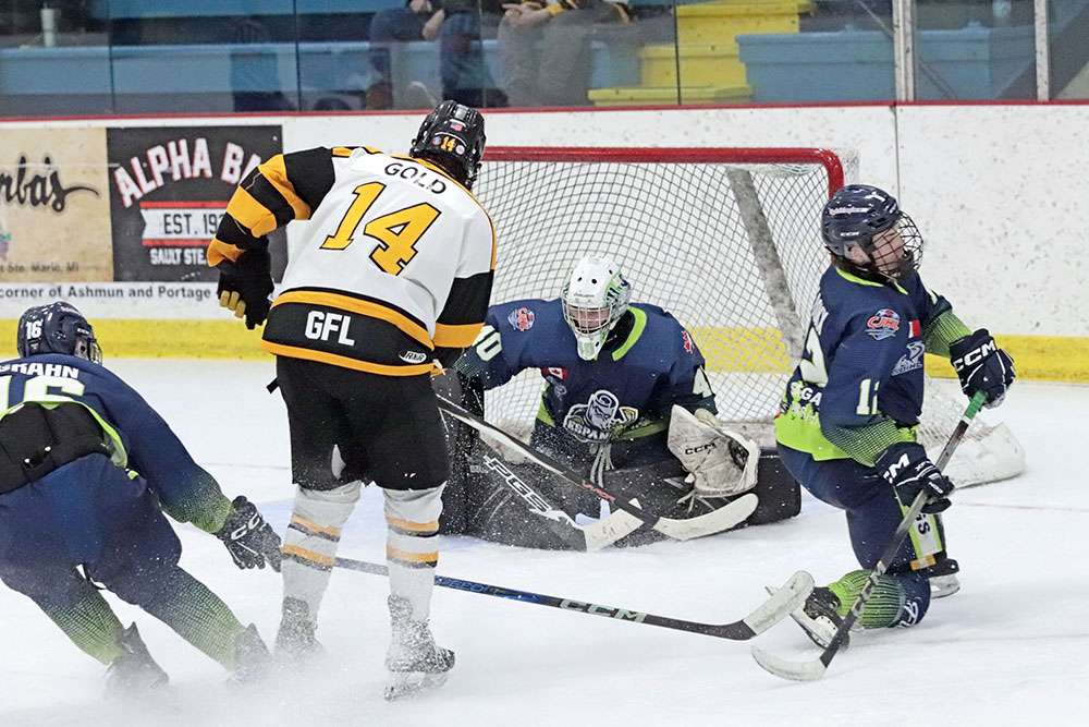 Matching that though before the end of the session, the Soo’s Lucas Caulfield tapped in a cross-crease feed from Gold for his 15th.