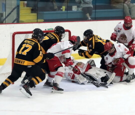 The Eagles opened the scoring midway through the first period when Nolan Nemecek batted in a rebound off an Alex Povorozniouk blast from up top during a power play in beating Beavers’ goalkeeper Justin Sullivan.