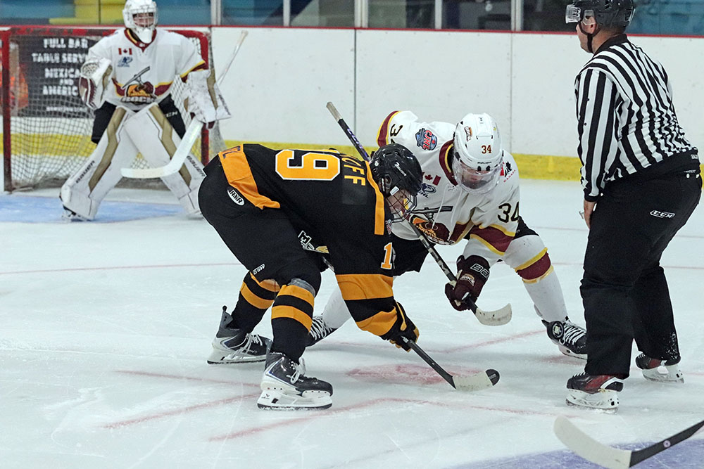 While there were quality chances at both ends of the ice in the first period, the efforts of the night’s respective goaltenders, the Rock’s Ayden Mullen and the Eagles Jace Knoerle kept it scoreless.